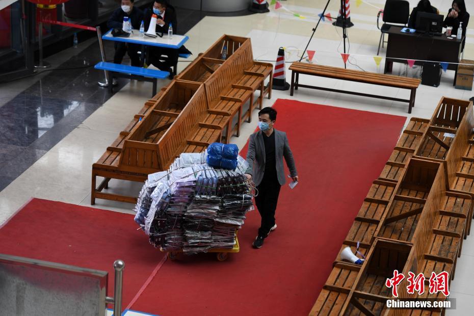 3月10日,昆明新螺蛳湾国际商贸城,一名工作人员进行网络直播。新螺蛳湾国际商贸城是中国西南最大的综合性商品批发交易市场,该市场3月8日正式复工开市,按下了云南商贸批发流通产业复工复产的“启动键”。中新社记者 康平 摄