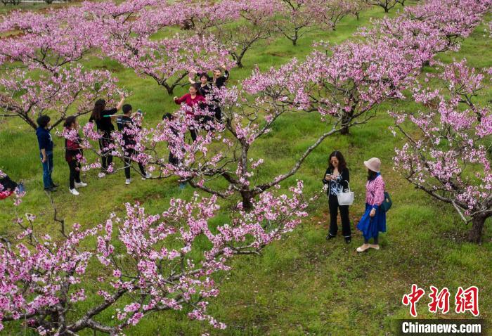 3月22日,位于江西省永修县凤凰山桃花园景区内的十万株桃花竞相绽放,春风十里桃花香,吸引不少游客走进户外前来游玩拍照。连日来,江西永修县凤凰山桃花园十万株桃花正值盛花期。桃园内,连片桃花竞相绽放,一簇一簇红的、粉的、白的桃花怒放在青山绿水之间,宛如一幅镶嵌在青山秀水中的美妙画卷,置身花之海洋之中,让人心旷神怡、流连忘返。