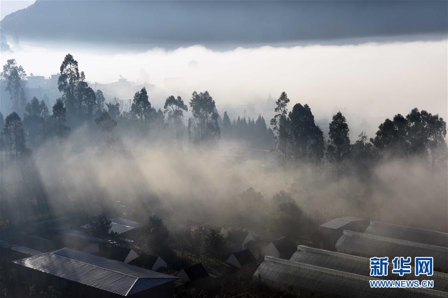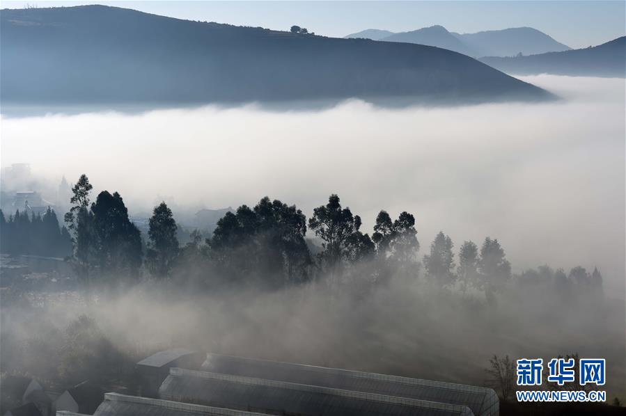 云雾笼罩的禄劝屏山街道绿槐村(11月23日摄)。 11月23日,大山深处的云南省禄劝彝族苗族自治县屏山街道绿槐村被云雾笼罩,景色优美。 新华社记者 杨宗友 摄