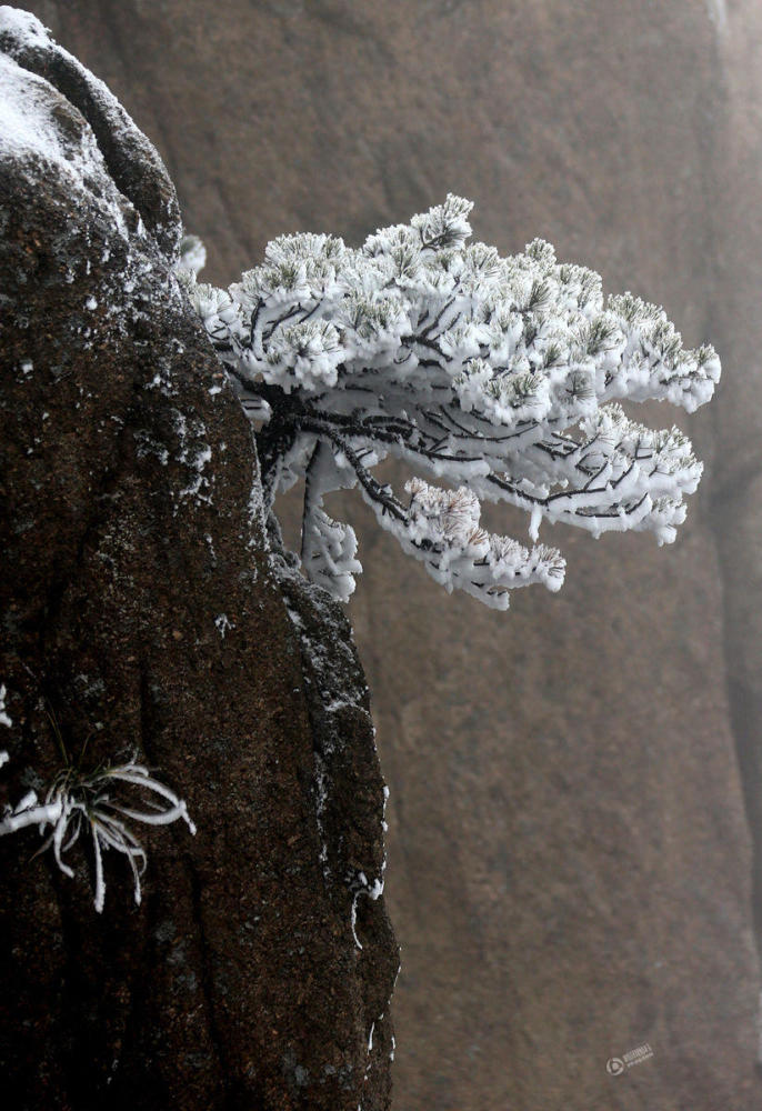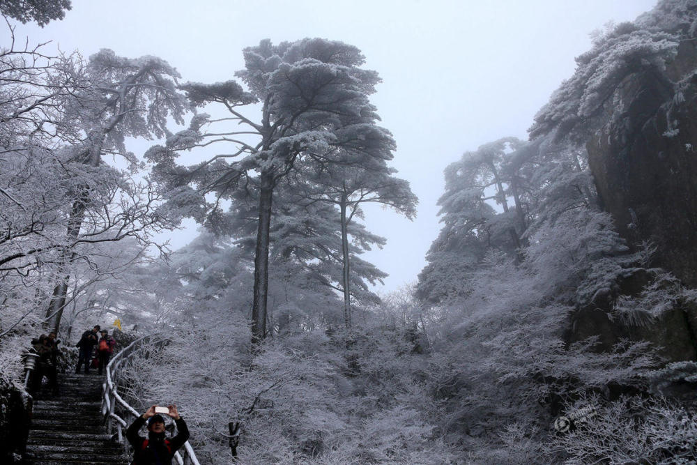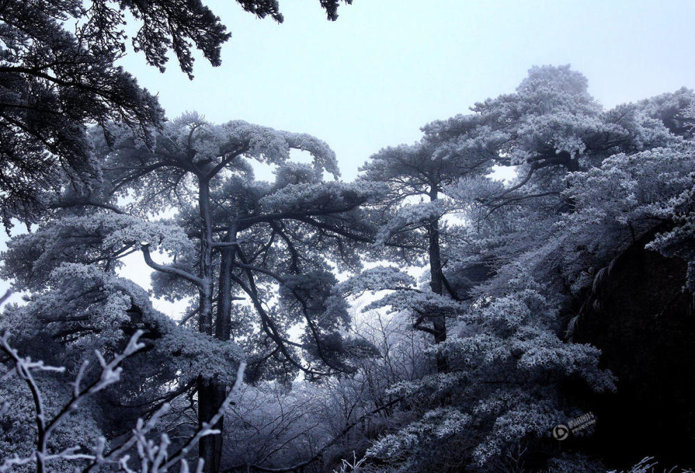 黄山风景区玉树琼枝的雪景。