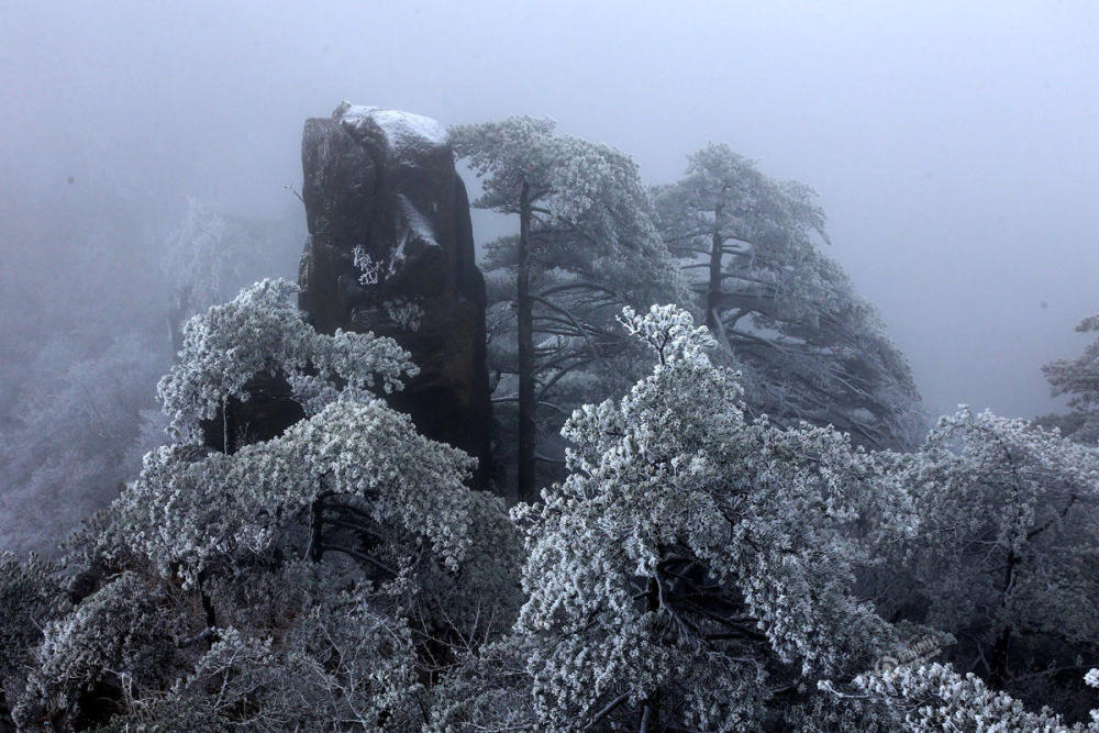安徽黄山迎入冬初雪 玉树琼枝美不胜收