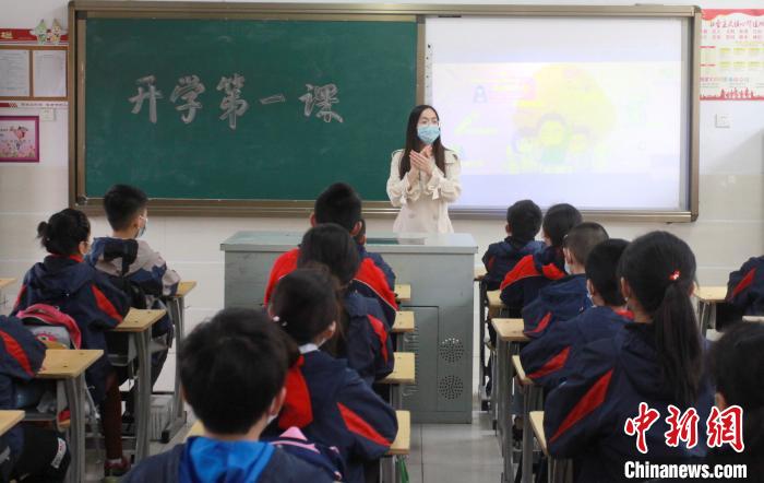 江苏扬州小学开学复课 学生戴着口罩上课