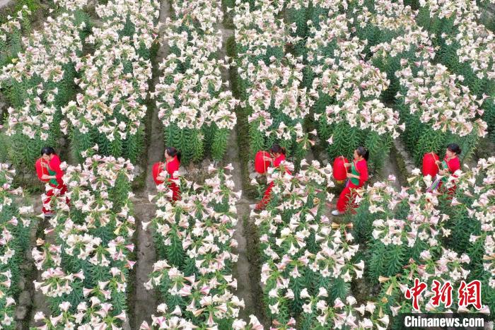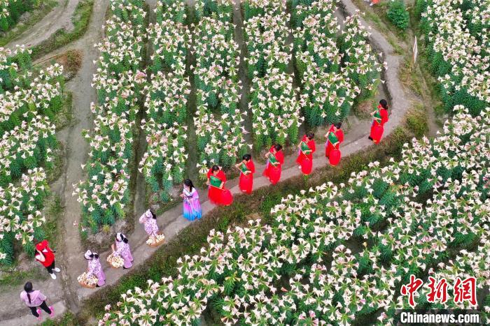 航拍江西万载百合花盛开 助力农民脱贫致富