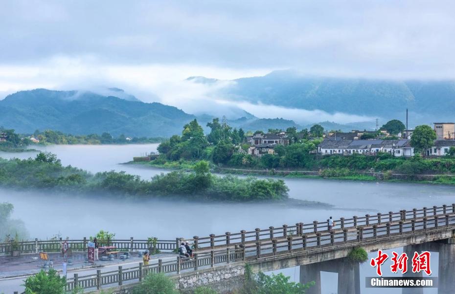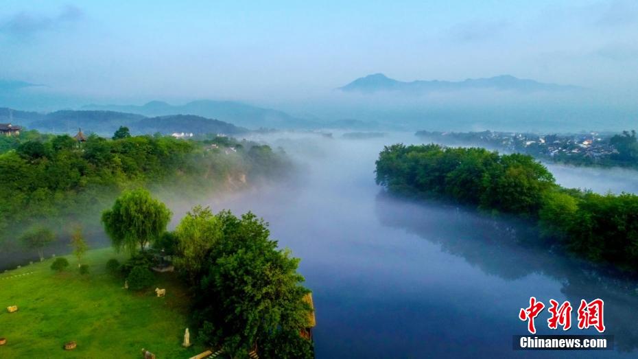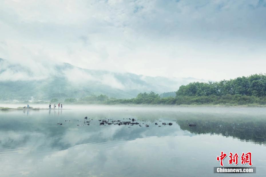 安徽泾县桃花潭畔江雾缭绕胜似仙境