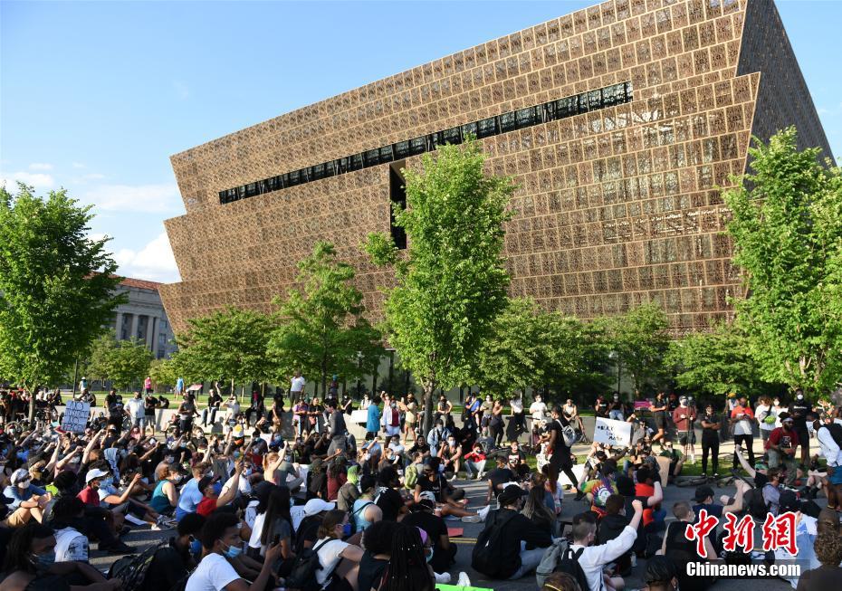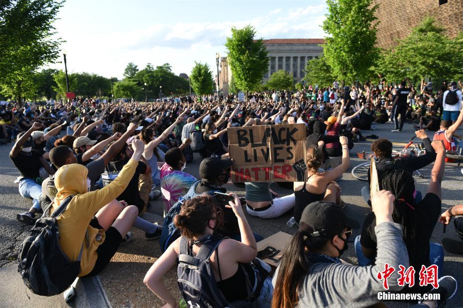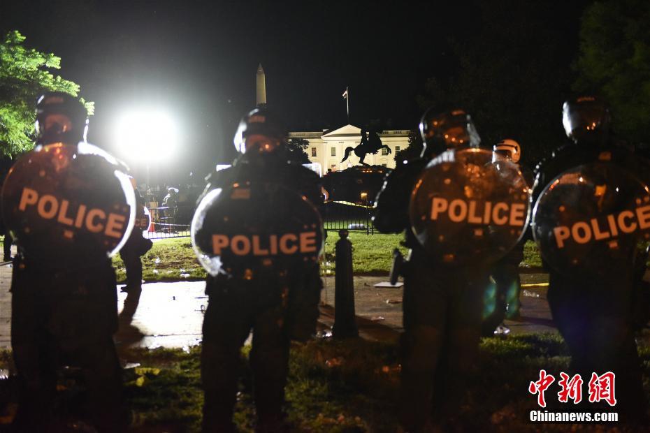 当地时间5月30日,反种族歧视抗议活动继续在美国首都华盛顿进行。美国明州非裔男子乔治·弗洛伊德遭暴力执法死亡事件持续发酵。图为警察在白宫北侧的拉斐特公园内严阵以待。 中新社记者 陈孟统 摄