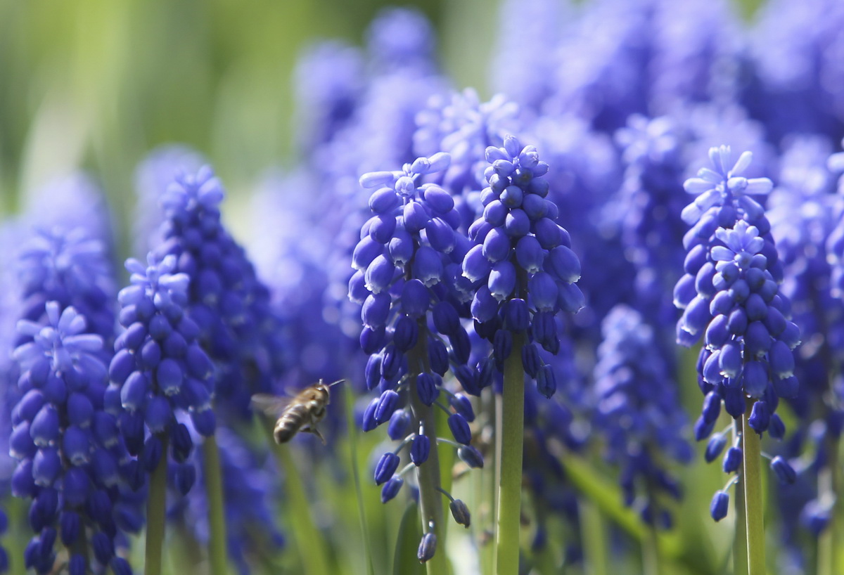 图5 2020年4月28日,在乌克兰基辅,蜜蜂在风信子花丛中飞舞。