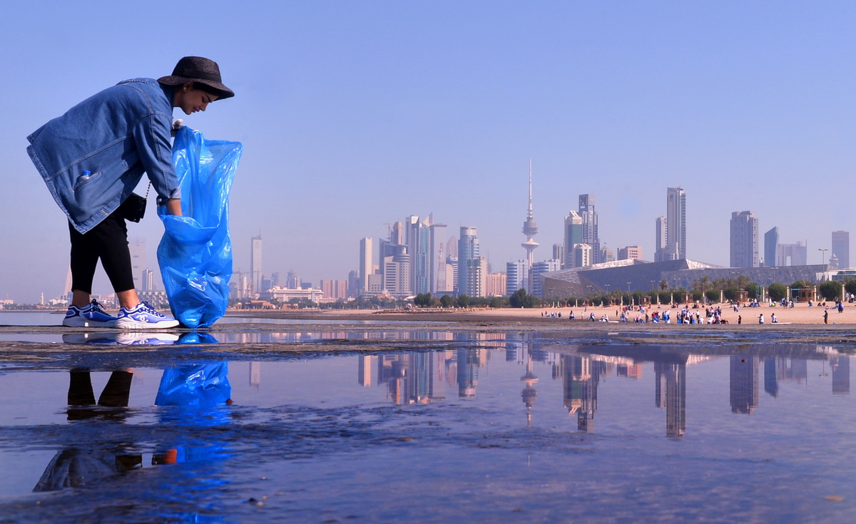 图11 2019年11月2日,志愿者在科威特首都科威物城清理沙滩。