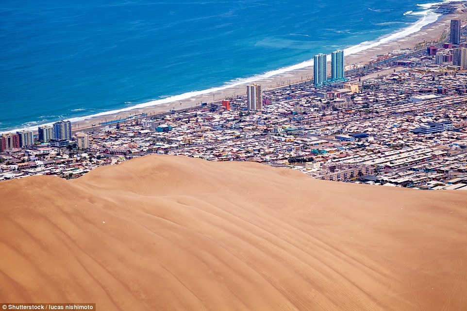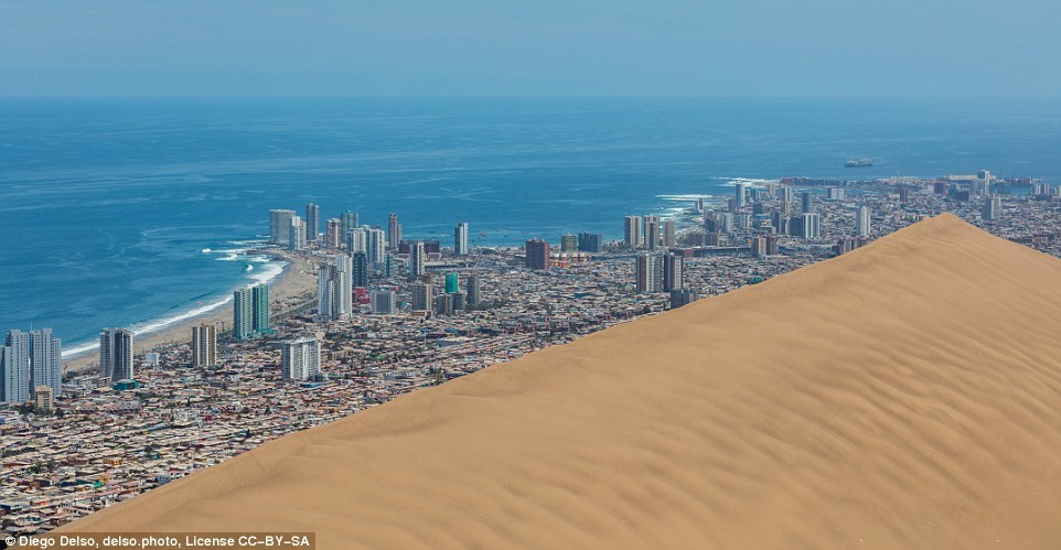 据英国《每日邮报》报道,伊基克位于智利北部,是一个港口城市。不同于很多现代城市放眼望去全是高耸的摩天大楼,伊基克西临太平洋,东靠阿卡塔马沙漠,沙漠上有一座高460米、长4公里的沙丘,沙丘因其独特形状被称为“龙山”。