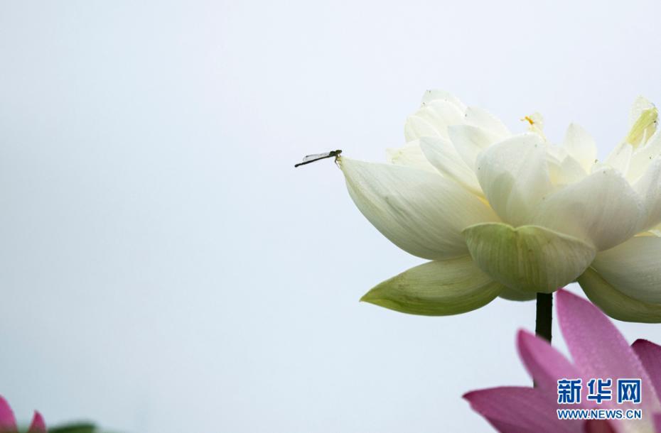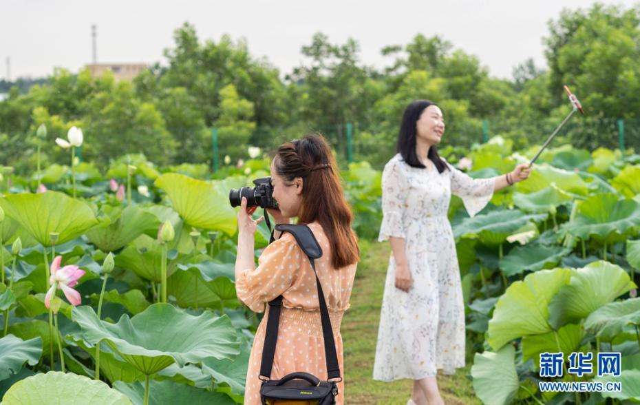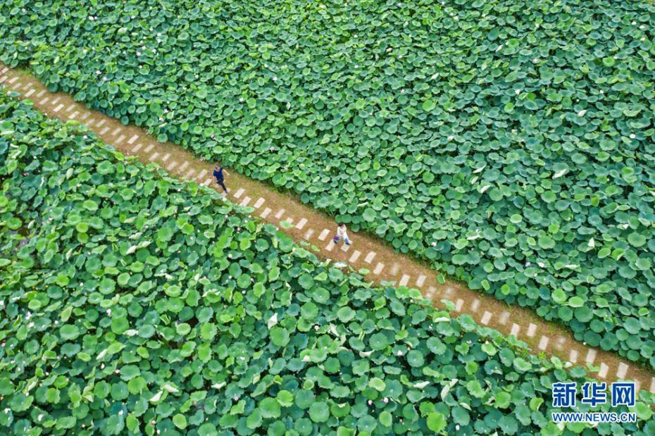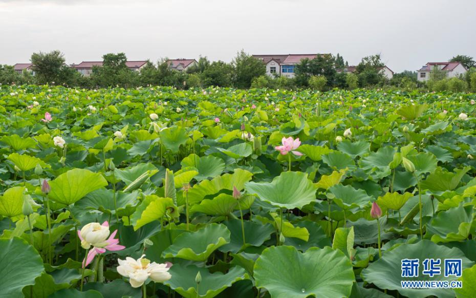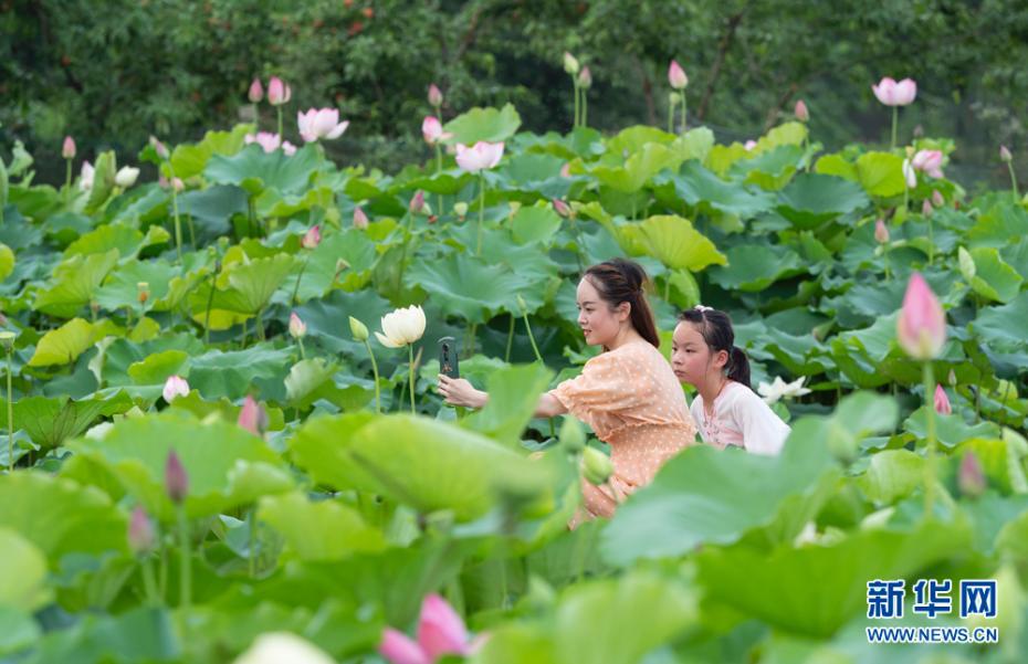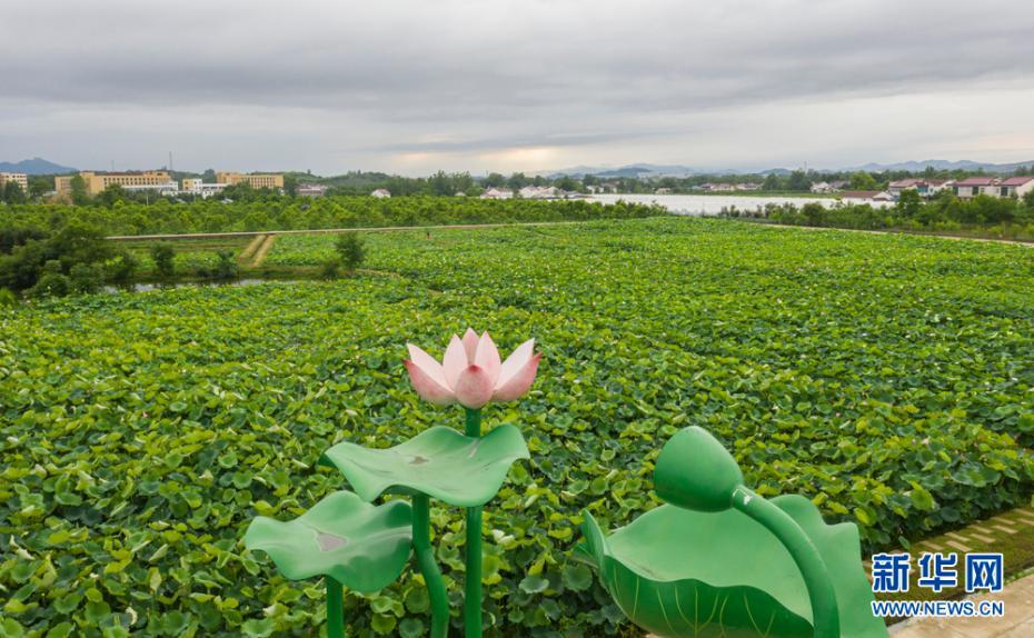 这是6月12日在霍山县与儿街镇大沙埂现代农业产业园里拍摄的荷花。近日,地处大别山腹地的安徽省霍山县与儿街镇大沙埂现代农业产业园里荷花盛开,吸引附近居民和游客前来赏花拍照。新华网发 徐程 摄