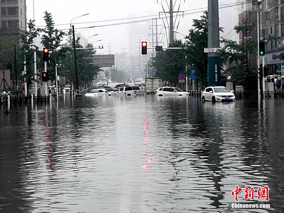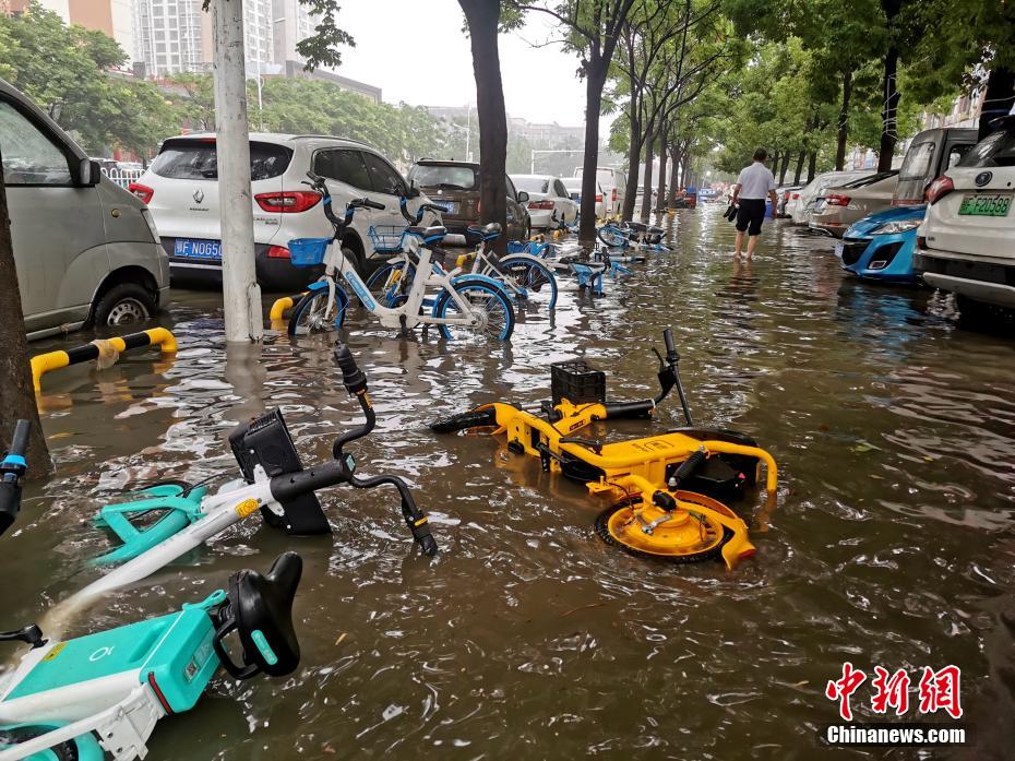 湖北襄阳遭遇强降雨 居民趟“河”上班