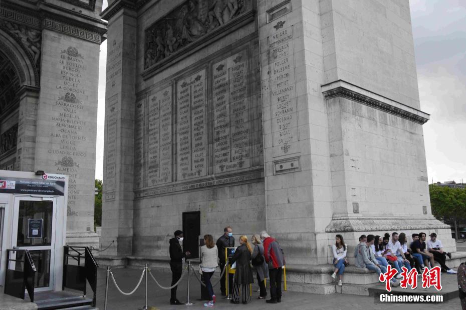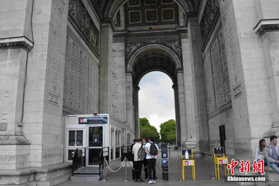 当地时间6月15日,巴黎凯旋门恢复开放,参观者入内要戴口罩。凯旋门采取限流措施,每日参观人数仅限1000人。受新冠肺炎疫情影响,凯旋门对外关闭3个月。 中新社记者 李洋 摄