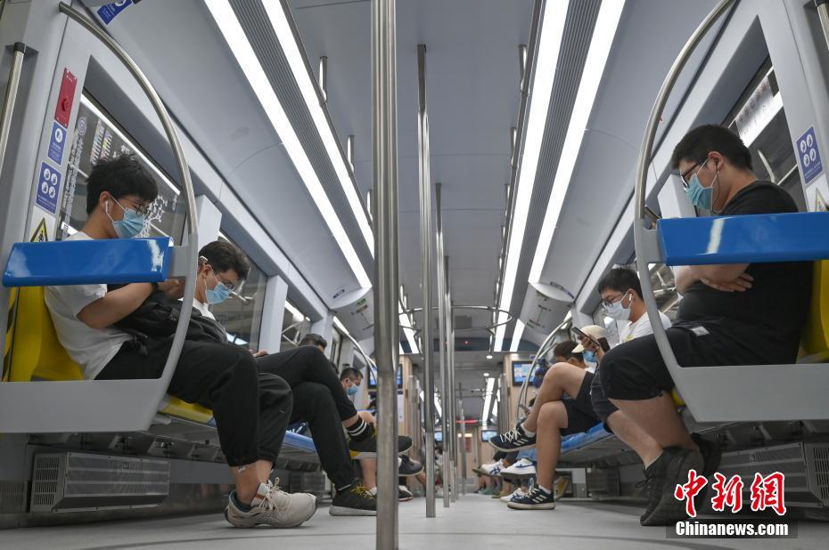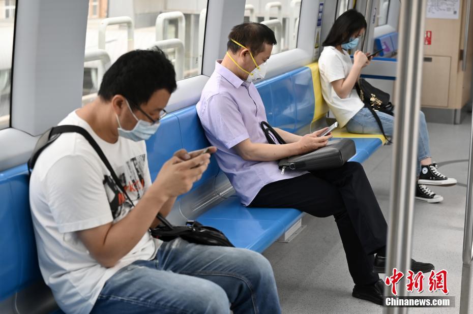 6月17日,北京市民乘坐地铁S1号线出行。6月16日晚,北京市应急响应级别由三级调至二级。根据防控措施要求,北京地铁将根据客流量控制满载率,并在高峰期视客流情况适时限流。 中新社记者 张兴龙 摄