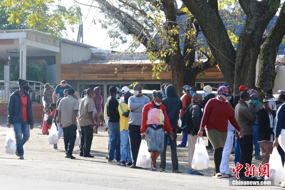 进入六月以来,南非新冠肺炎疫情呈现快速增长态势。日前,中新社记者走上南非街头,探访南非民众在疫情下的生活。图为在南非约翰内斯堡一社会救济站,南非低收入民众领取政府发放的救济食品。 中新社记者 王曦 摄