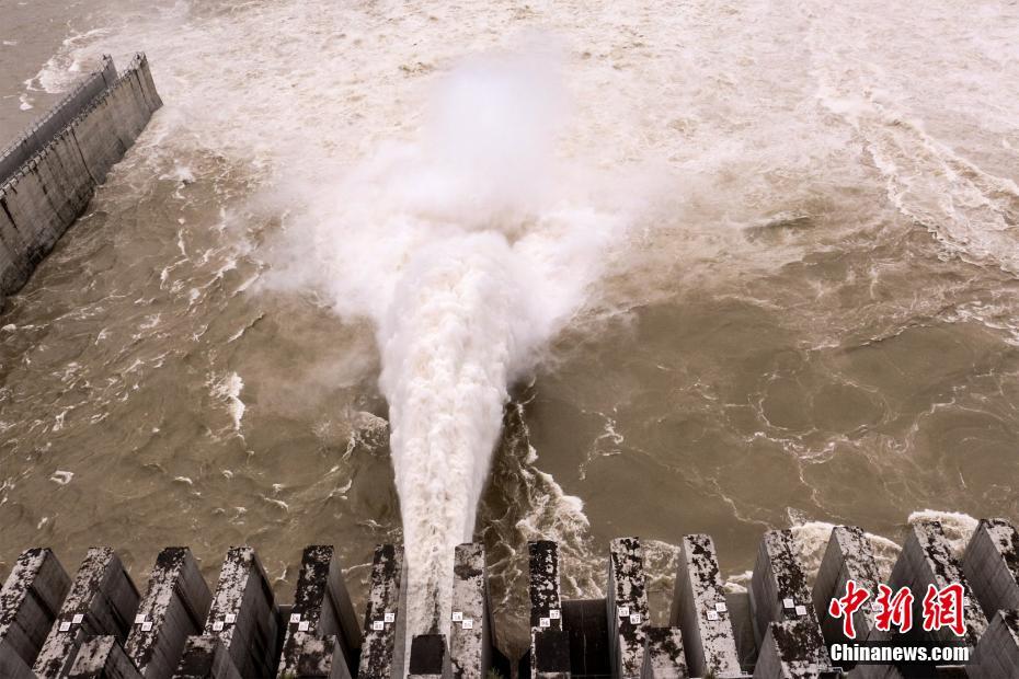 6月29日,湖北宜昌,长江三峡枢纽开启泄洪深孔泄洪。 近日,受长江上游持续强降雨影响,三峡水库入库流量增加。为确保防汛安全,三峡枢纽今年首次开启泄洪深孔泄洪,以调整水库水位。图片来源:视觉中国