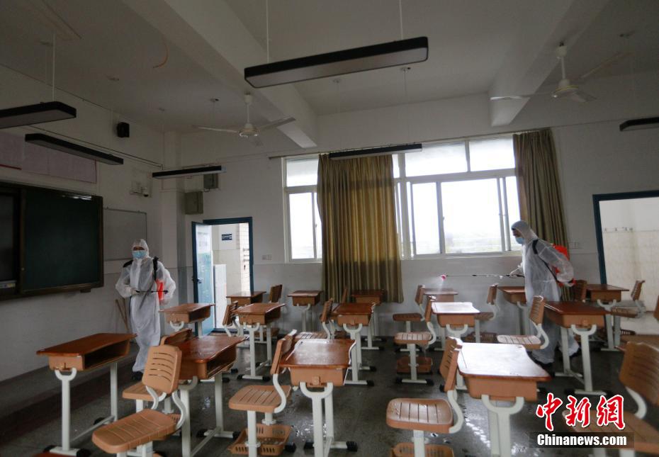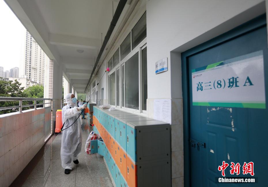 武汉消防员深入高考考点开展全面消杀