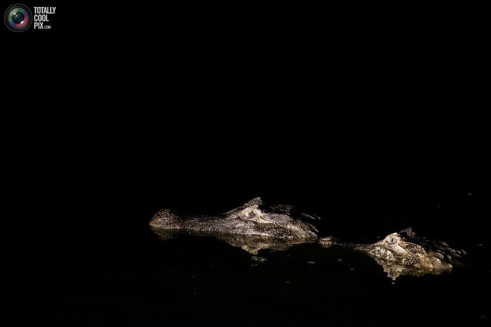 当地的志愿者将幸存的鳄鱼转移到了附近农场的人造池塘中。图为一条巴拉圭凯门鳄漂浮在当地一处农场的池塘中。