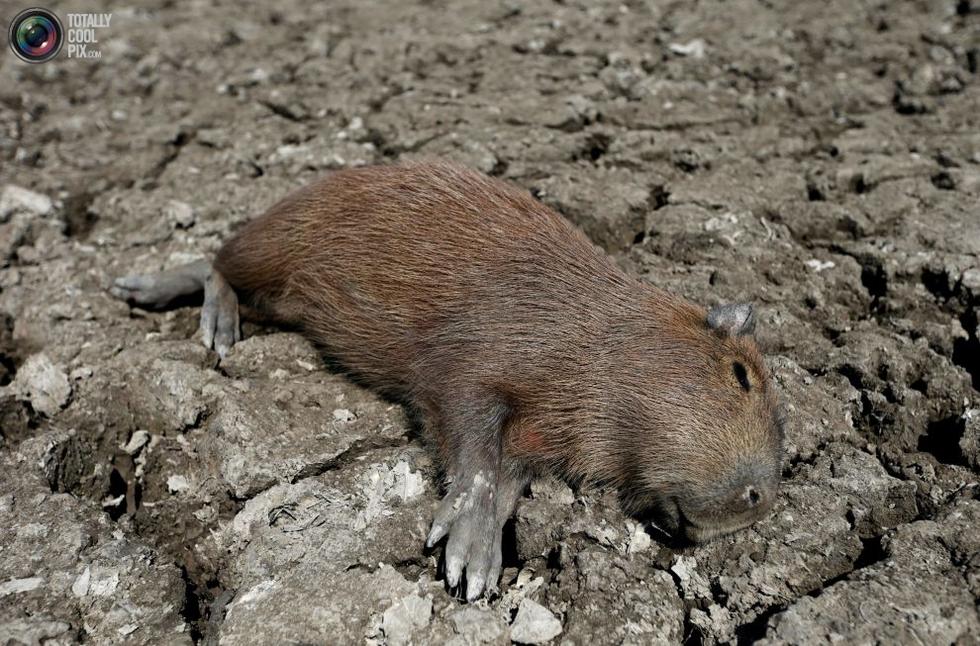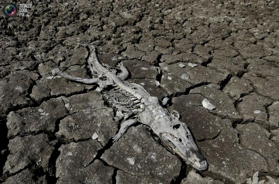据博客网站Totallycoolpix报道,发源于安第斯山脉的巴拉圭皮科马约河过去19年来正在逐渐干涸,现在河床已经干裂,很多巴拉圭凯门鳄缺水死去。河流两岸的其他动物也面临缺乏水源的危险。