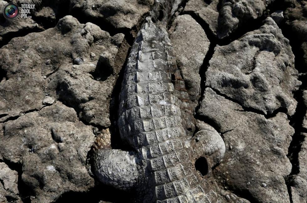 到处都可以看到死去的鳄鱼。鳄鱼们失去了自己的容身之处,干死在河床上。