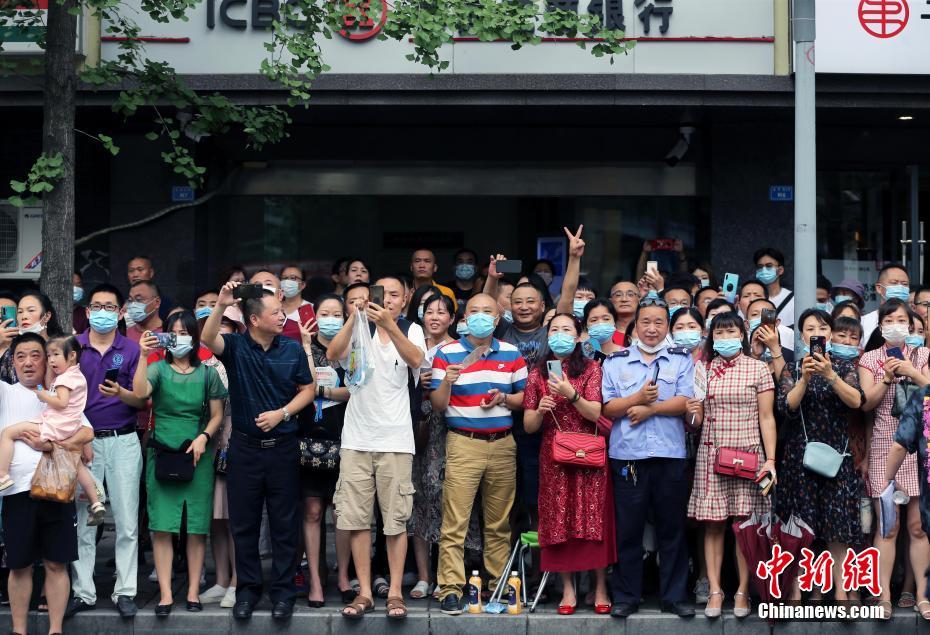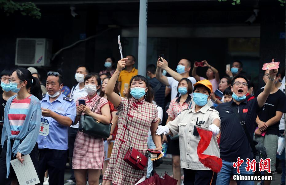 2020年高考首门考试结束 成都考生与老师拥抱