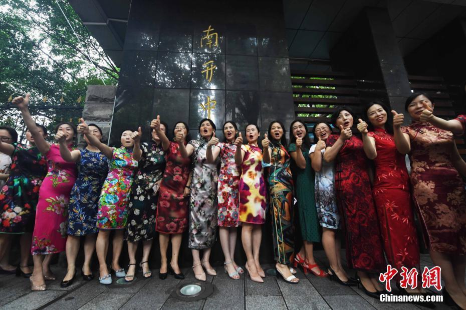 7月7日,2020全国高考拉开序幕。经历了几个月的疫情之后,考生们在这个特殊的高考季走进了考场。在场外,老师、同学、家长等各路人马用各种方式给考生学子们助考,上演各种“戏码”。图为重庆市南开中学考点外,一商家工作人员举牌为考生加油助威。 中新社记者 陈超 摄
