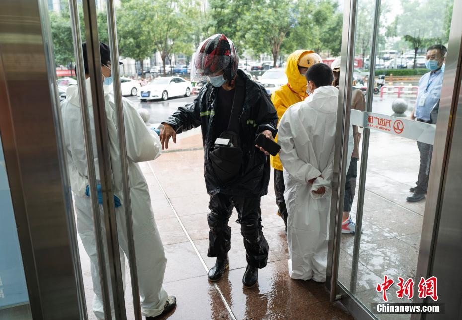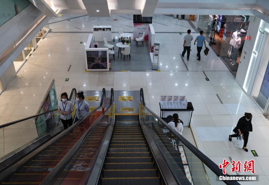 7月9日,北京石景山万达广场入口处设置有防疫提示牌和相关工作人员,入内者须扫描“北京健康宝”登记并接受体温检测。近日,北京市石景山区卫生健康委、区疾控中心已完成相关流行病学调查、环境采样检测,对密接人员实行集中医学观察,对商场环境进行全面专业消杀、清洁。外环境采样检测结果均为阴性,密接人员和万达广场所有员工的核酸检测结果均为阴性。经过综合评估,石景山万达广场已具备开业条件,于7月9日上午10点恢复营业。7月2日,因一名新冠肺炎病毒核酸检测阳性顾客在此活动,石景山区立即启动应急预案,对万达广场采取了临时封闭等疫情管控措施。中新社记者 侯宇 摄