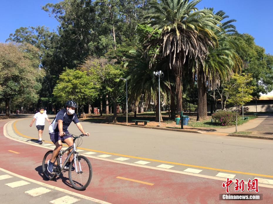 当地时间7月13日,在巴西圣保罗,民众在市内最大的伊比拉普埃拉公园散步休闲。当日,巴西最大城市圣保罗市允许符合卫生和防疫条件的公园在工作日恢复开放。 中新社记者 莫成雄 摄