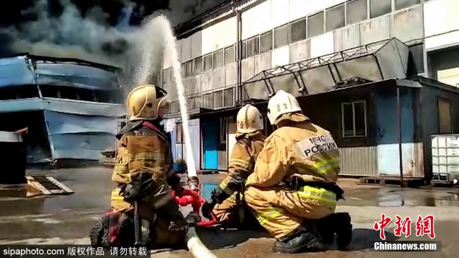 俄罗斯一油漆仓库发生大火 过火面积超1万平方米