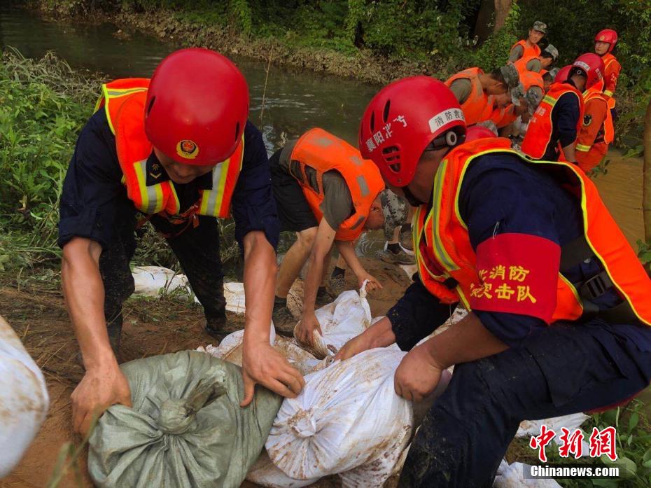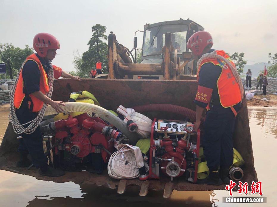 由于江西汛情形势严峻,在湖北省消防总队的统一调度下,襄阳市消防救援支队紧急抽调36人组成抢险突击队,于7月13日深夜赶赴江西指定区域,配合当地防汛抢险。7月15日下午,襄阳消防救援支队抗洪突击队在庐山市湖滨路,着手架设手抬机动消防泵抽水阵地。 张岩岩 摄