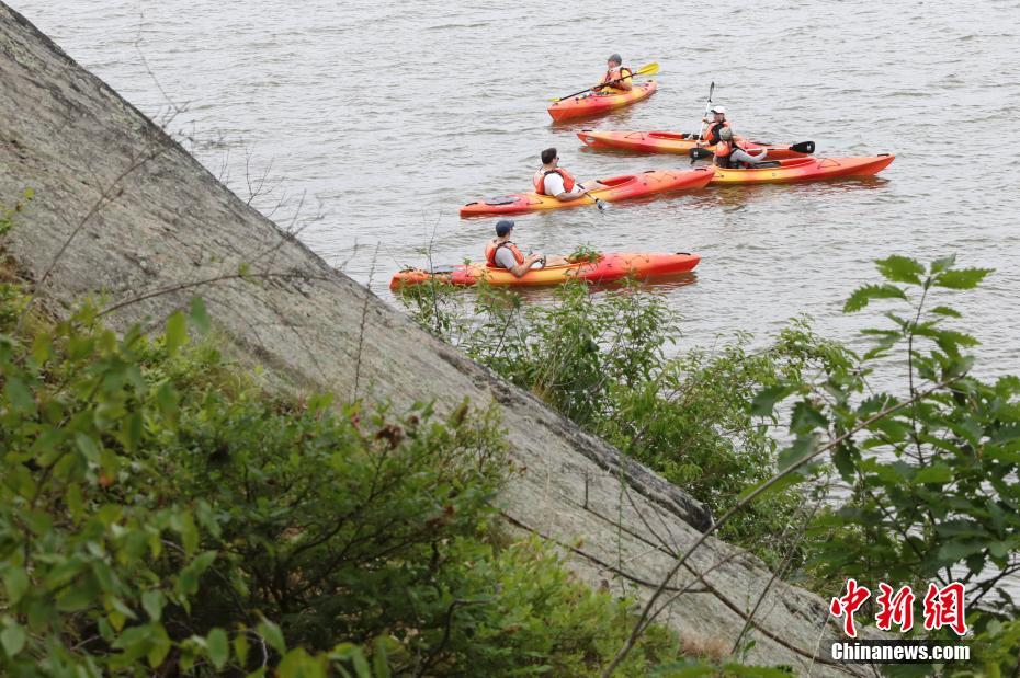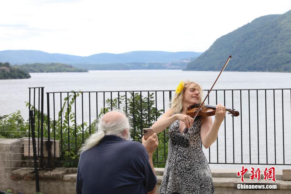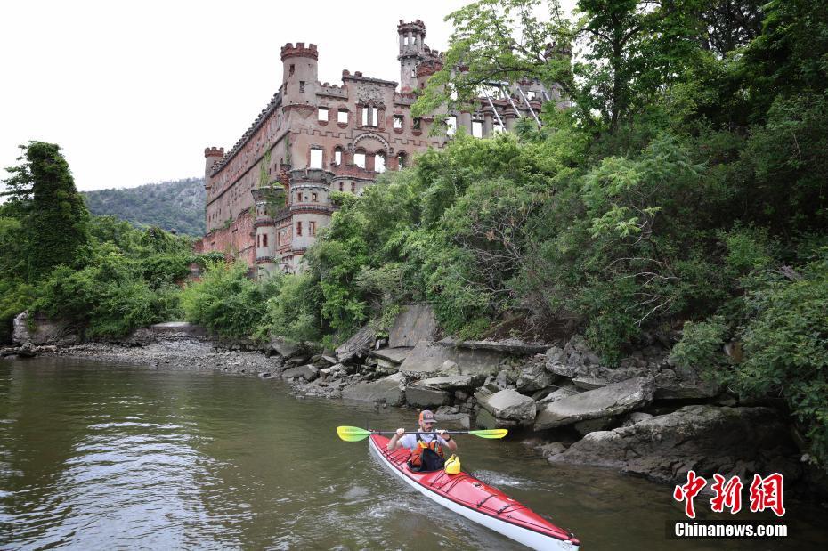 当地时间7月16日,美国纽约州哈德逊河波拉佩岛,民众参观班纳曼城堡。随着纽约州分阶段开放,全州景点近期陆续向公众开放,并采取人流量限制等措施。中新社记者 廖攀 摄
