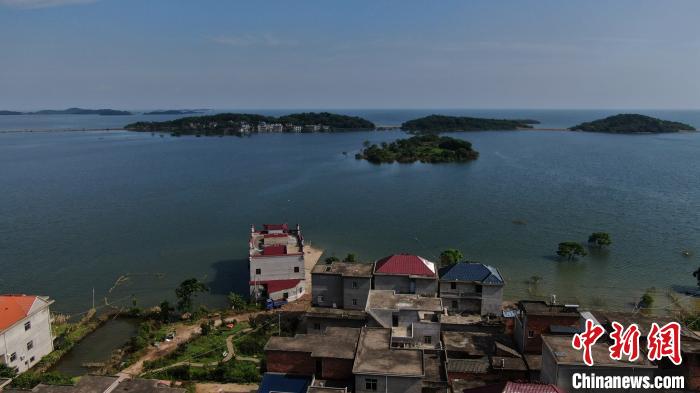 7月23日,江西省水文局继续发布洪水红色预警,鄱阳湖区及五河尾闾地区水位退势加快。受枭阳圩堤进洪影响,江西省都昌县周溪镇枭阳村被洪水围困,从空中俯瞰,村庄变身孤岛。