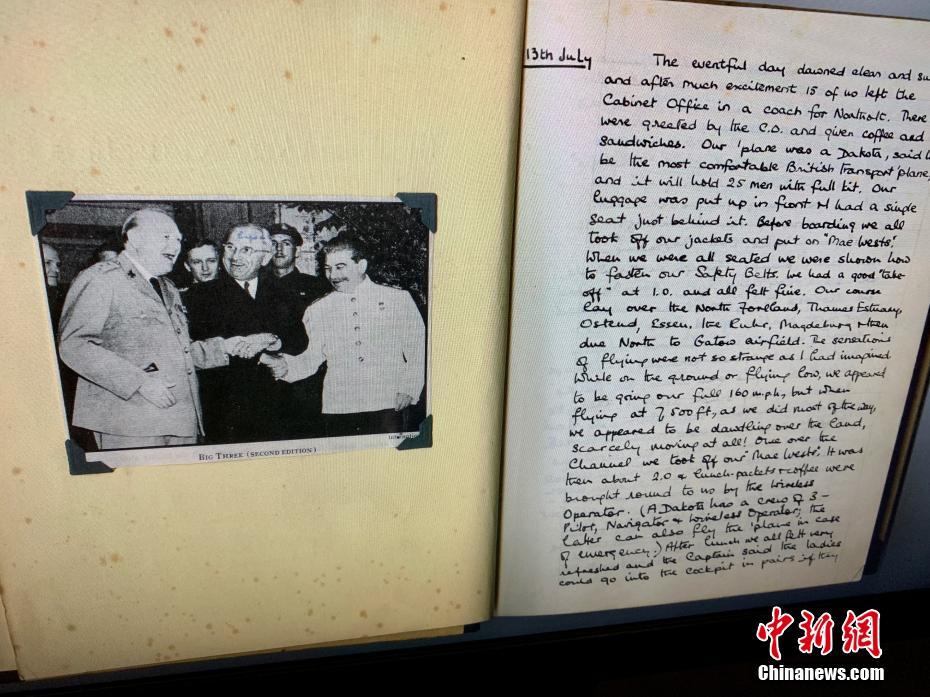 近日,位于德国波茨坦的采西林霍夫宫举办专题展览,纪念波茨坦会议举办75周年。中新社记者专程前往探访这一重要历史事件留给今人的记忆与思考。图为丘吉尔秘书乔伊·米尔沃德详细记录其所亲历波茨坦会议经过的日记。中新社记者 彭大伟 摄