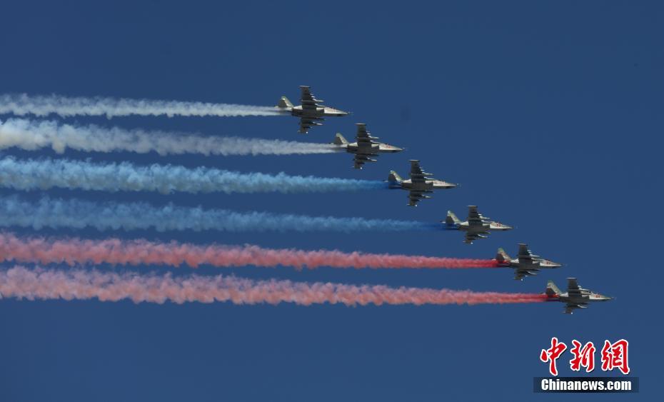 当地时间7月26日,俄罗斯多地举行阅兵,庆祝海军节。俄罗斯海军司令部所在地圣彼得堡是此次海军节阅兵活动主场。46艘舰艇和41架直升机和固定翼飞机参加了活动。图为圣彼得堡阅兵活动现场。中新社记者 王修君 摄
