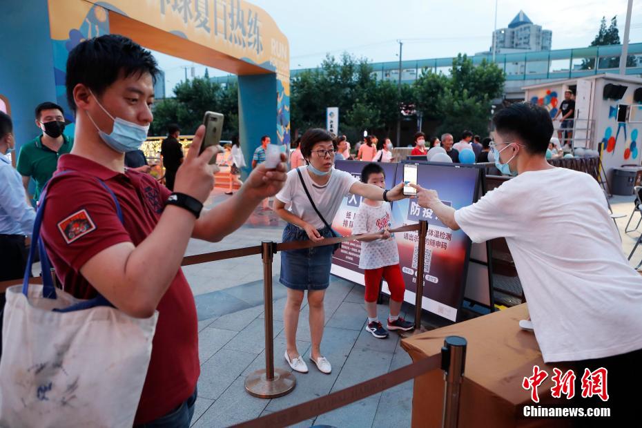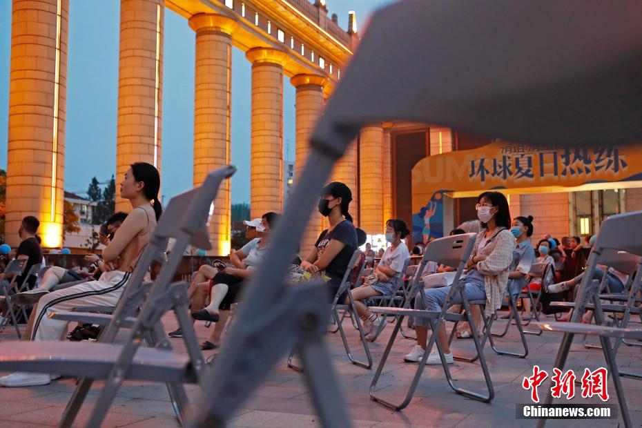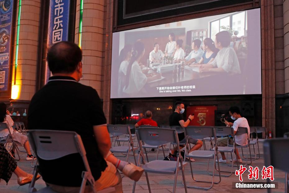 7月27日,民众在上海环球港北广场露天电影展映现场观影。当日,第23届上海国际电影节除影院展映外,首次推出露天展映,覆盖上海7个商圈和30多个社区。露天电影是一种返璞归真的观影方式,会让一些中老年观众唤醒小时候在学校或在社区里看电影的记忆,而对年轻的观众来说则是一种前所未有的体验。图为民众戴着口罩正在露天观看电影。 殷立勤 摄