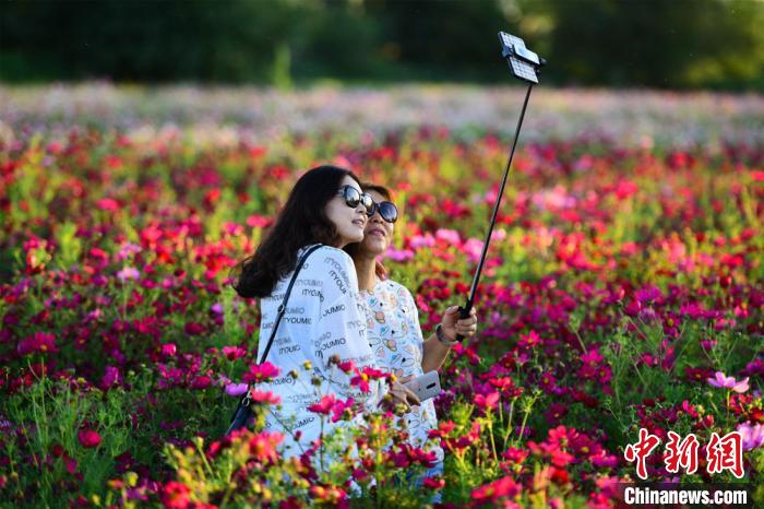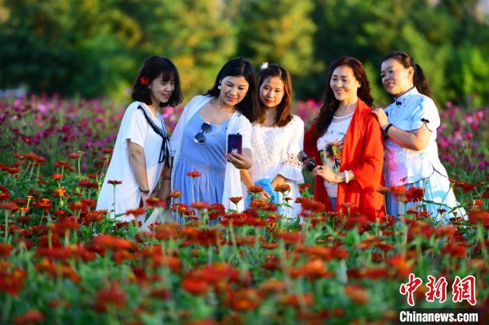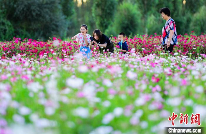 盛夏七月,丝绸之路国际文化旅游名城甘肃敦煌,鸣沙山下数百亩油菜花、薰衣草、百日菊、格桑花盛开,形成了大片大片的花海,吸引了大批市民和游客前来赏花游玩、观光拍照。