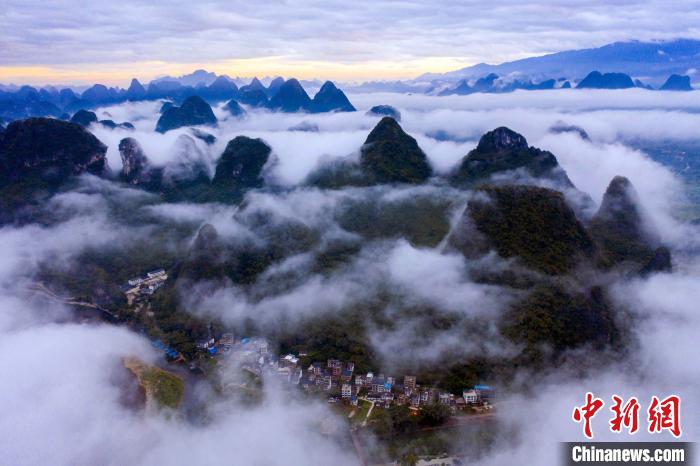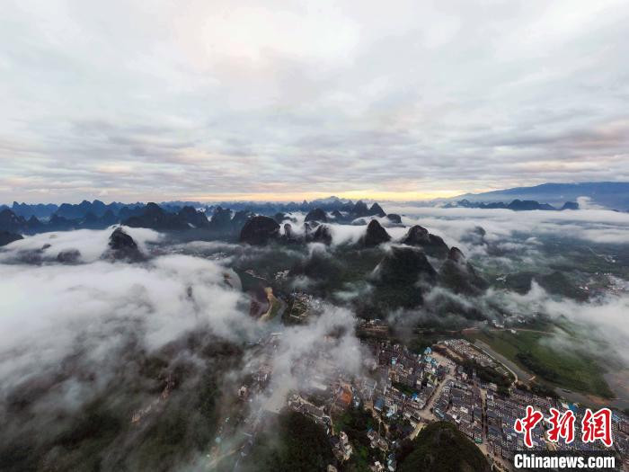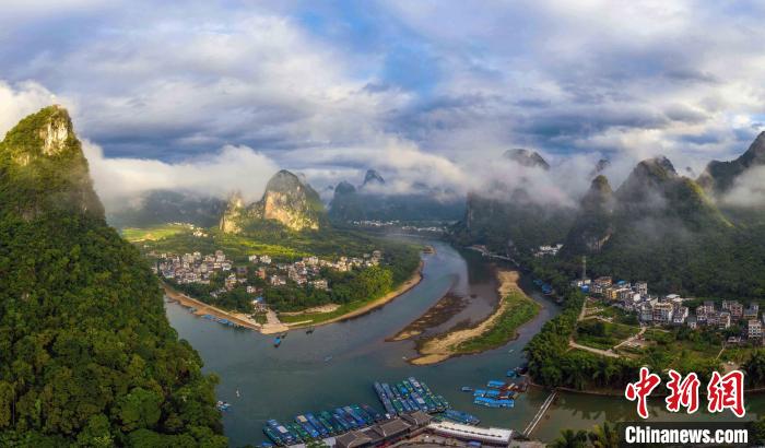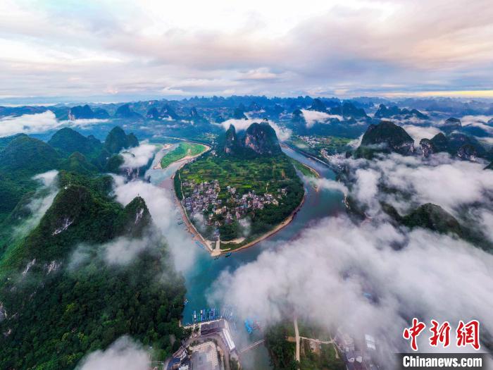 8月2日清晨,广西桂林市阳朔县兴坪古镇与漓江被云雾云雾笼罩,如诗如画,犹如仙境。(何华文 蒋雪林)