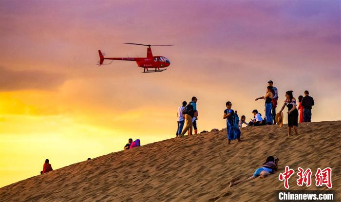 敦煌大漠旅游升温 驼队如龙游人如织