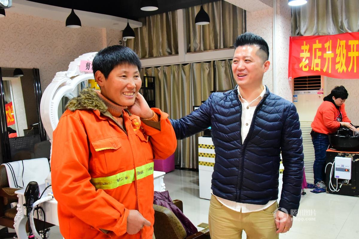 环卫工人李爱芝理完发照着镜子,更是高兴的合不拢嘴。“不是我夸张,这是我一辈子理的最好的发型。说实在的,现在街头理个发最少也得10元钱。我们确实有点舍不得花,毕竟家有老也有小,都想节省点。平时要么找社区最便宜的理发店,有时干脆让同事随便剪剪。”李爱芝说。