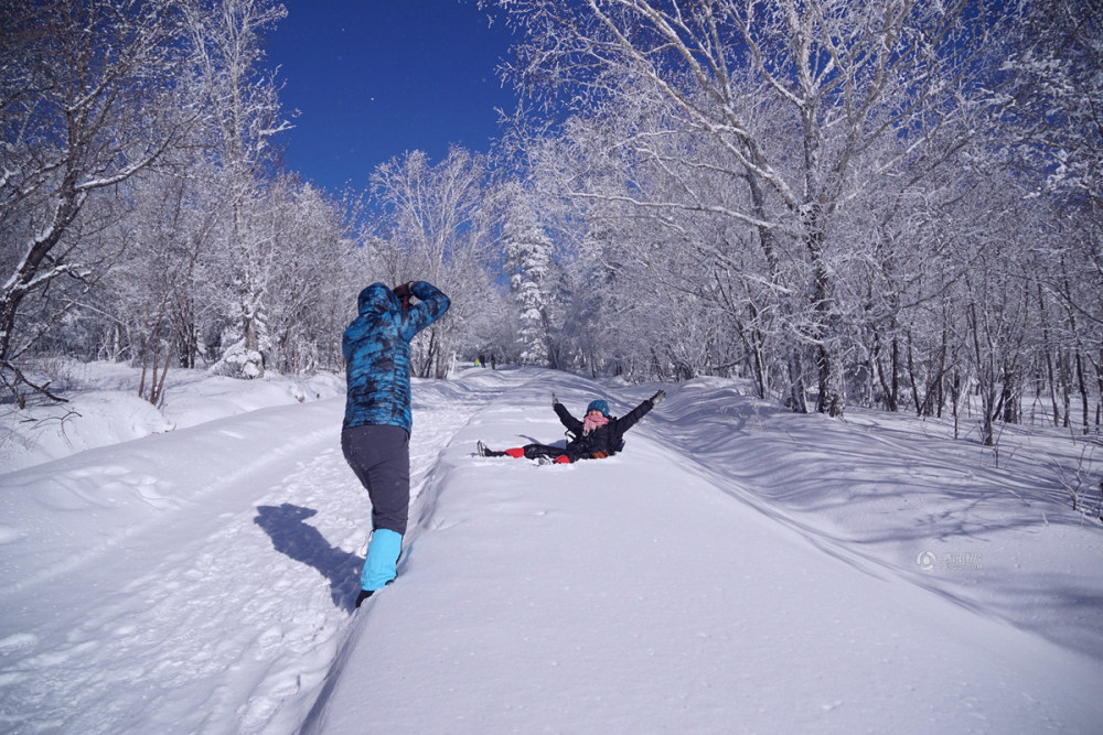 新华社发(王薇 摄) 这是11月28日在吉林延边仙峰国家森林公园拍摄的雾凇景观。吉林延边仙峰国家森林公园老爷岭海拔1400多米,每年10月至次年4月,寒流常常使这里的大片树林形成美丽的雾凇景观,壮美如画。 大片树林形成美丽的雾凇景观。 游客在拍摄雾凇美景。 延边雾凇美如画。 嬉戏的游人。 延边雾凇美如画。