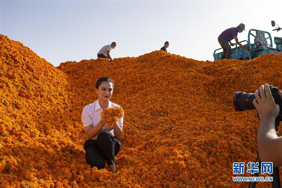 于田县是新疆和田地区五个未摘帽贫困县之一。为调整农业种植结构,当地引进生物科技企业,采取“政府支持+企业投资+农户参与”的产业发展模式,引导村民种植万寿菊,拓宽增收路径。