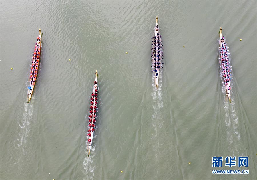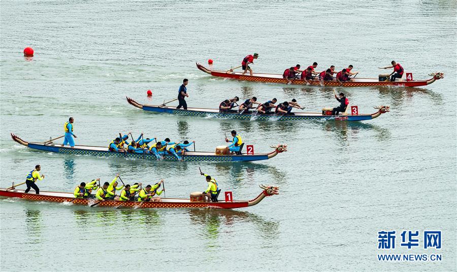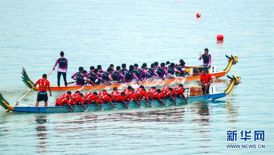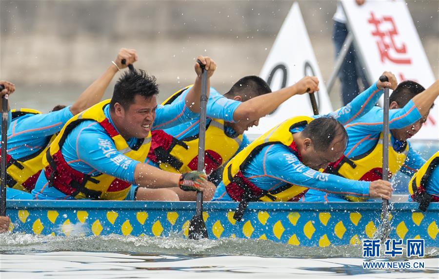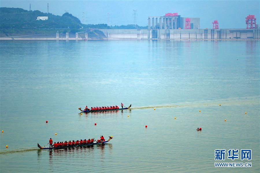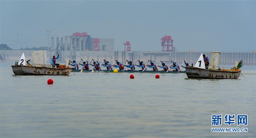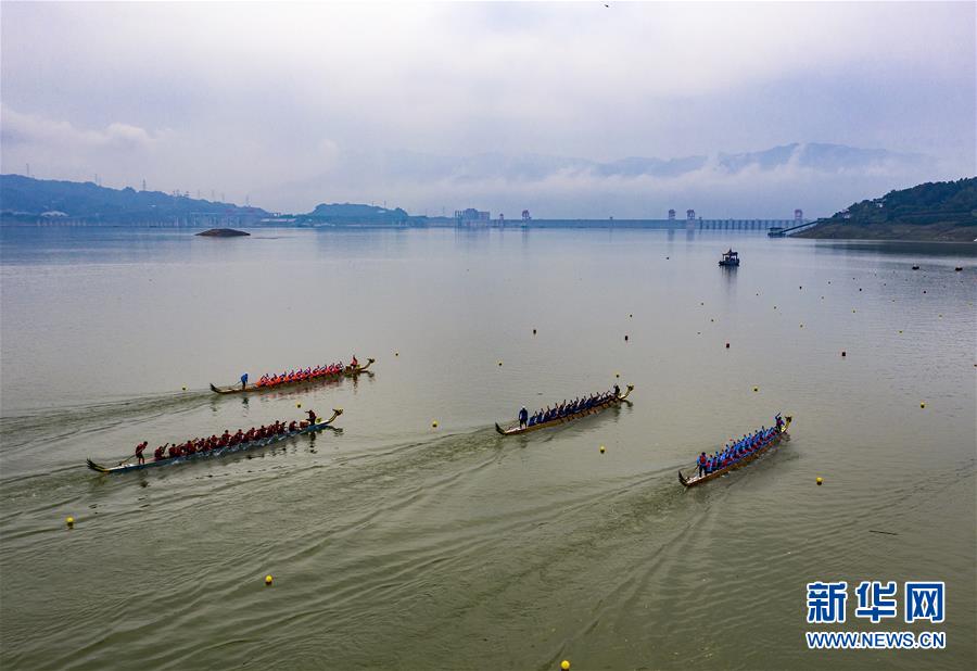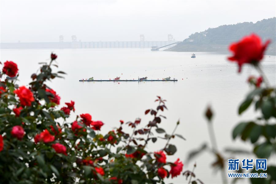 9月27日,参赛龙舟在比赛中。 9月26日至27日,一场龙舟争霸赛在三峡库区湖北省秭归县徐家冲港湾举行,来自湖北、广东、福建等地的12支代表队参加了角逐。 新华社发(郑家裕 摄)