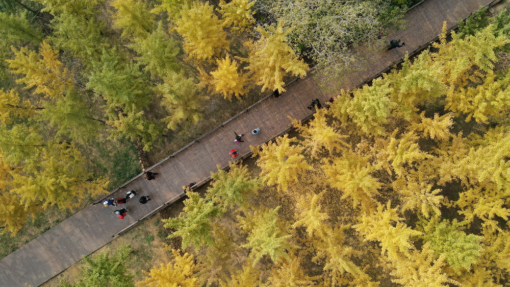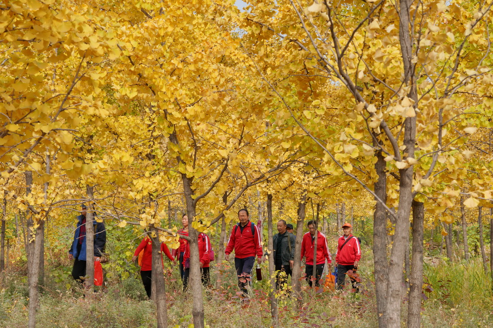 深秋时节,位于太行山东麓的河北省沙河市栾卸村万亩银杏林迎来观赏期,吸引了众多游客前来赏景。新华社记者 牟宇 摄