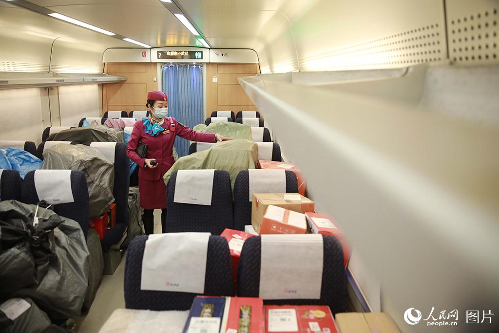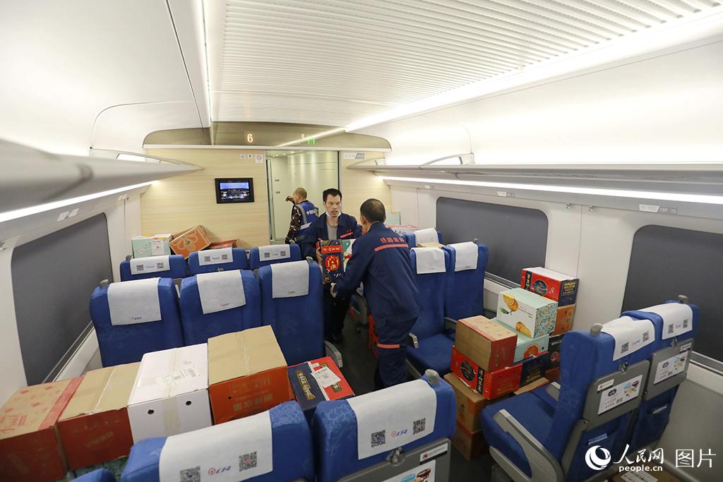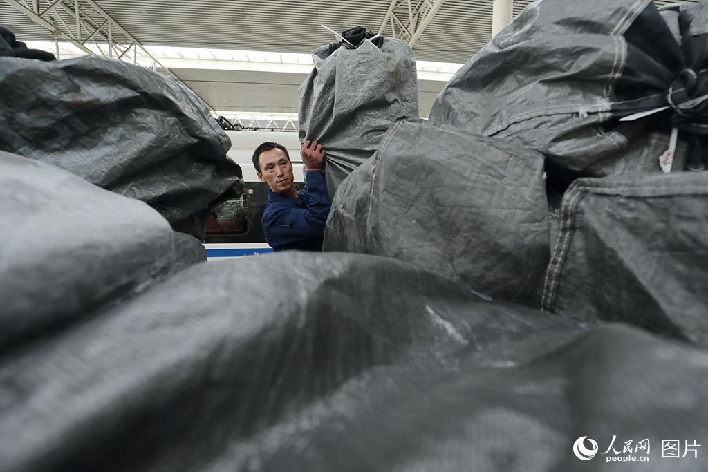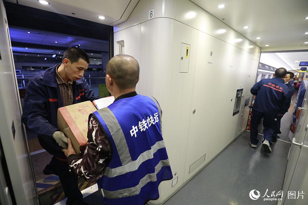 据了解,“双11”电商黄金周期间,成都客运段对往返于成都、重庆、贵阳、西安、杭州、武汉、厦门、烟台、广州等9个城市的9趟高铁动车组列车,采取预留整车运输的方式,即预留一节载客车厢专用于堆放高铁快运包裹,积极服务电商黄金周。李锴/摄
