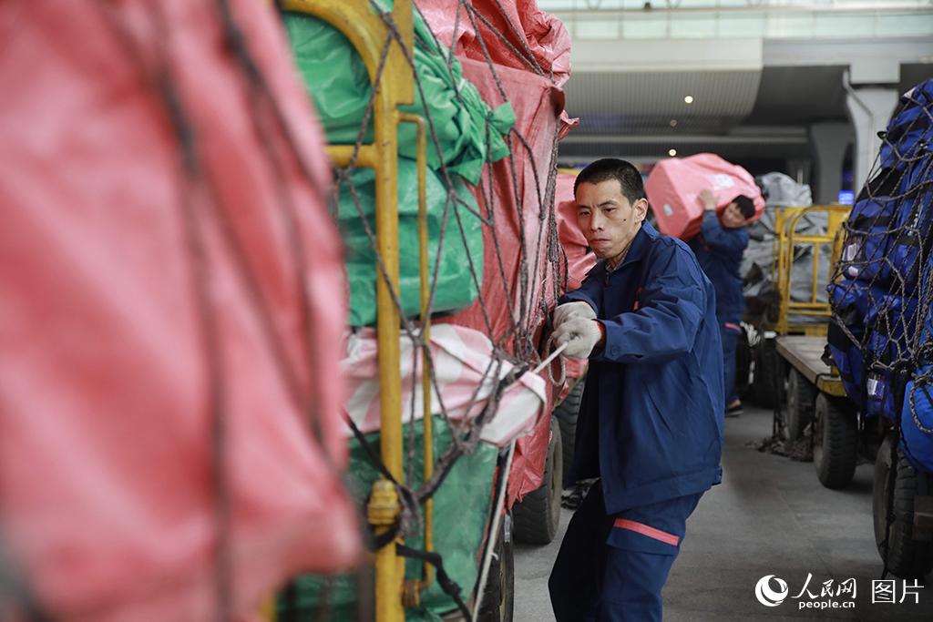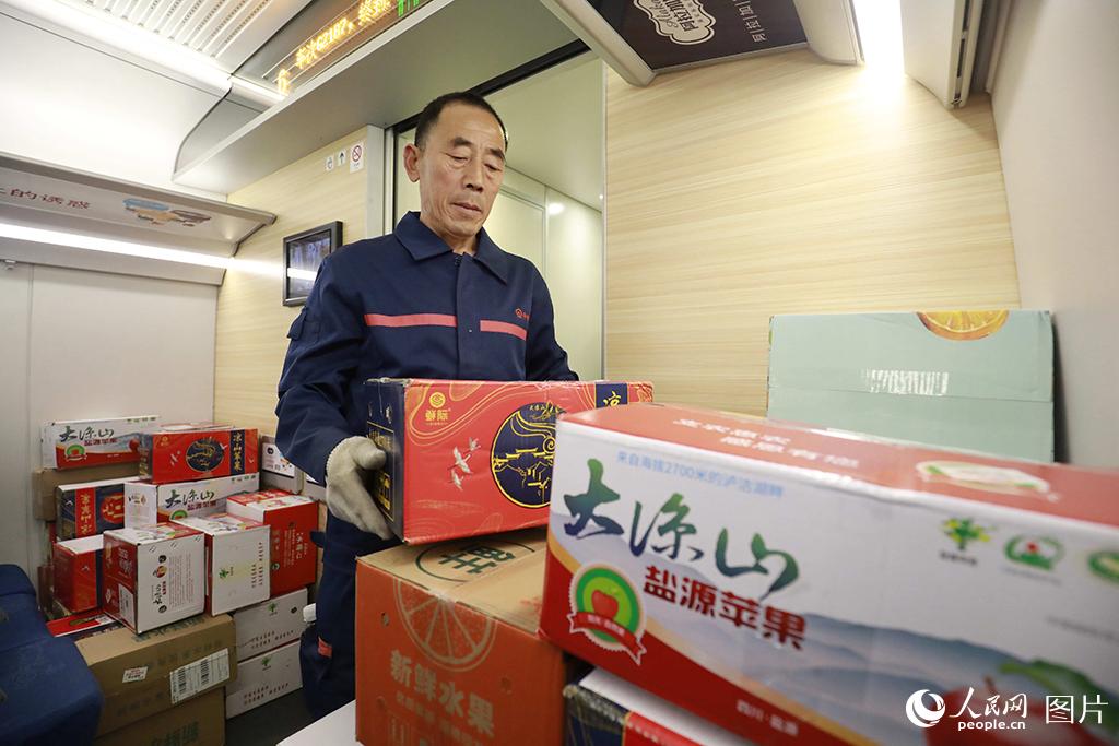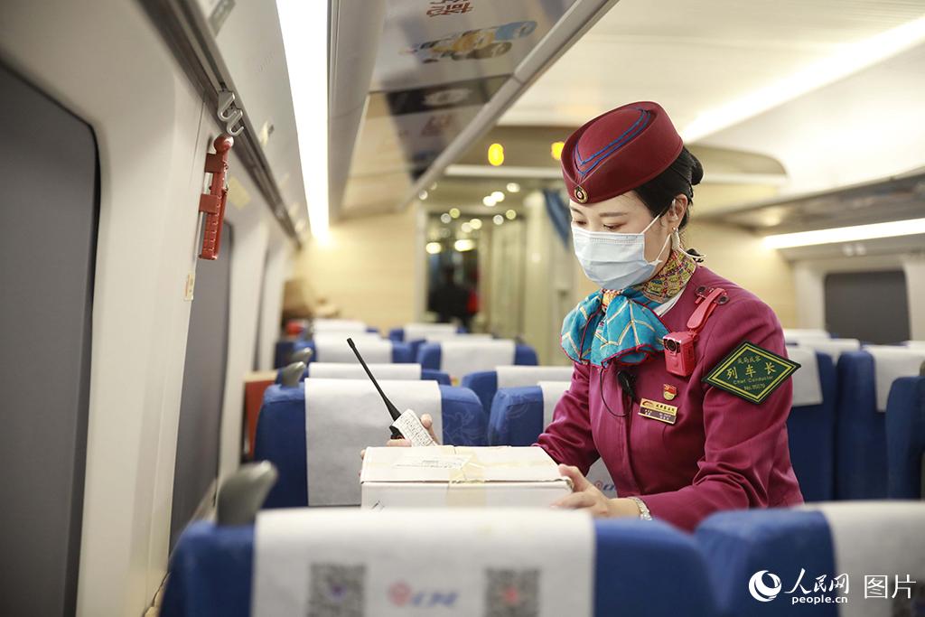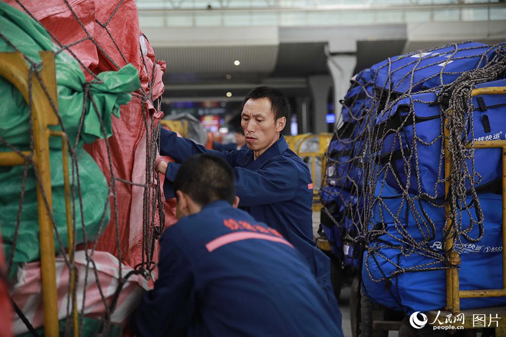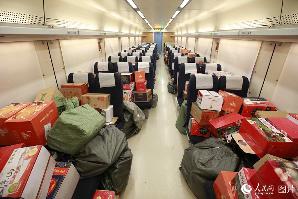 据了解,“双11”电商黄金周期间,成都客运段对往返于成都、重庆、贵阳、西安、杭州、武汉、厦门、烟台、广州等9个城市的9趟高铁动车组列车,采取预留整车运输的方式,即预留一节载客车厢专用于堆放高铁快运包裹,积极服务电商黄金周。李锴/摄