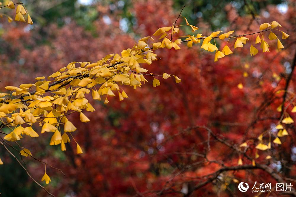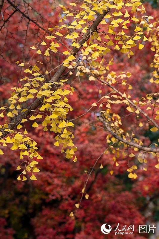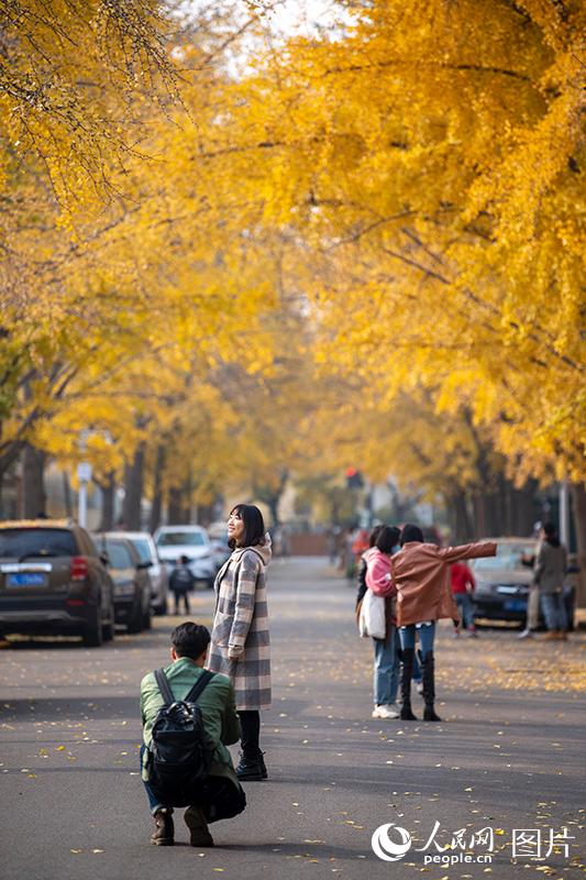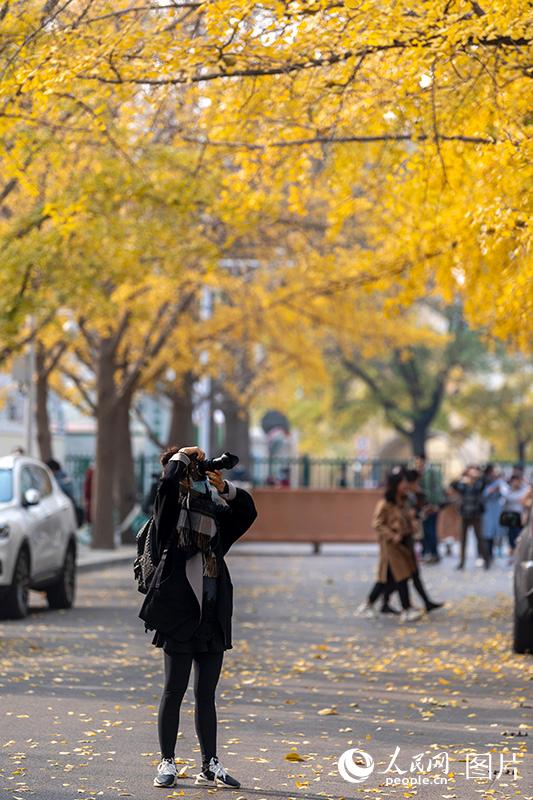 人民网北京11月16日电 (记者翁奇羽)虽然北京已于11月初正式入冬,但秋色依然没有散去。三里屯东五街金黄的银杏与火红的枫叶交相辉映美不胜收,吸引不少市民前来观赏初冬美景。