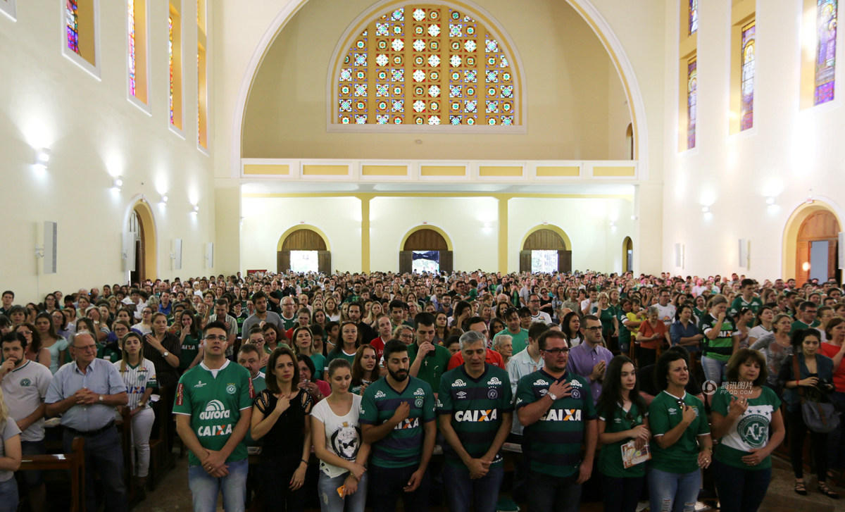 沙佩科球迷在当地教堂内祈福哀悼,心情悲痛。