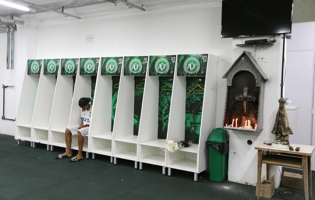 沙佩科恩斯队更衣室里,为遇难球员点上了蜡烛。