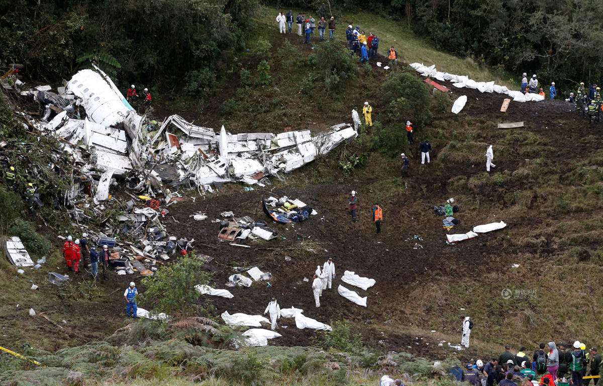 11月29日,一架载有81人的玻利维亚拉米亚航空公司客机在哥伦比亚麦德林附近坠毁。机上载有巴西足球甲级联赛球队沙佩科恩斯队员。最新消息称,救援现场发现6名幸存者,另航班名单上有4人并未上飞机,遇难人数为71人。目前失事客机的两个黑匣子都已被找到。在巴西城市沙佩科,大批球迷集结俱乐部球场相拥痛哭。