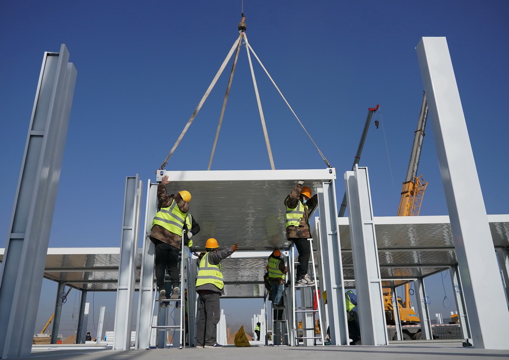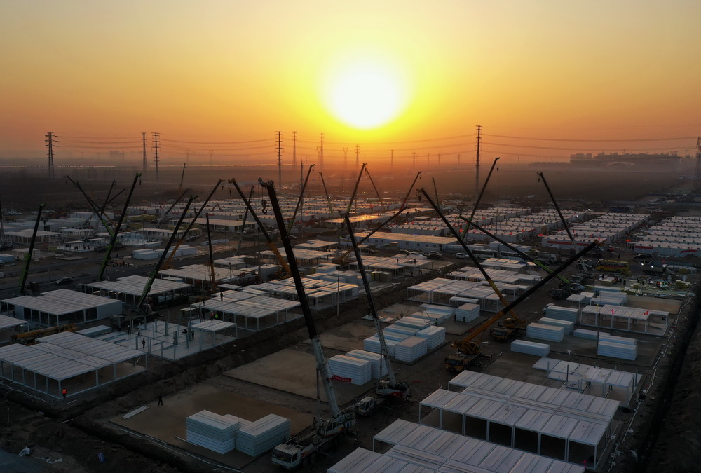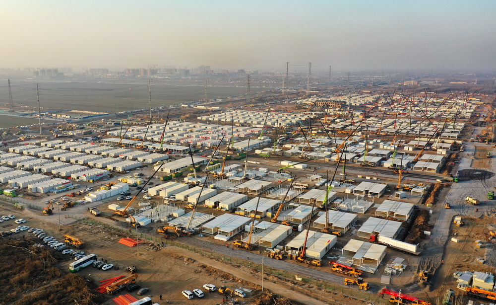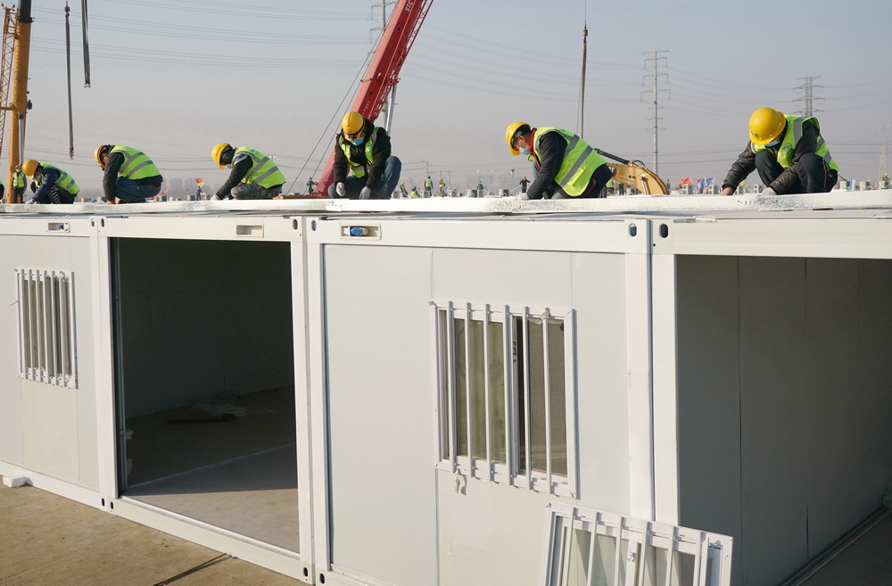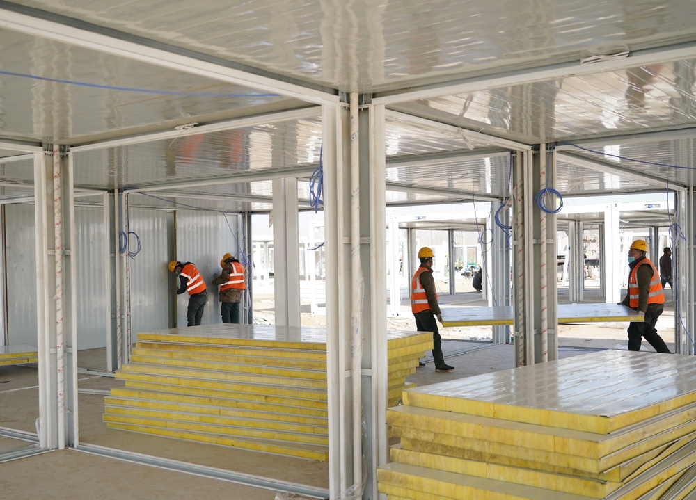 日前,石家庄黄庄公寓隔离场所项目集成房屋主体结构拼装陆续完工。黄庄公寓隔离场所位于河北石家庄市正定县与藁城区交界处黄庄村南,总占地面积510亩,用于安置新冠肺炎密切接触者和次密切接触者等人员。新华社记者 杨世尧 摄