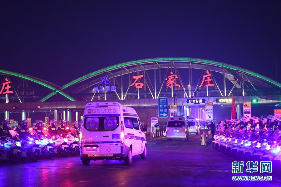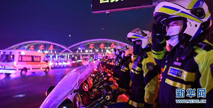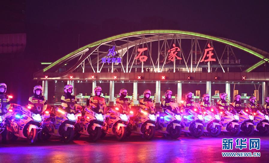 图三 1月27日,石家庄交警在裕华高速口集结送别陕西援冀医疗队。