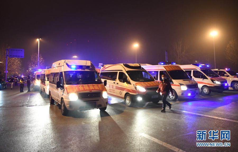 图二 1月27日,陕西援冀负压救护车队驶入石家庄市裕华高速口,返回陕西。新华社记者 朱旭东 摄